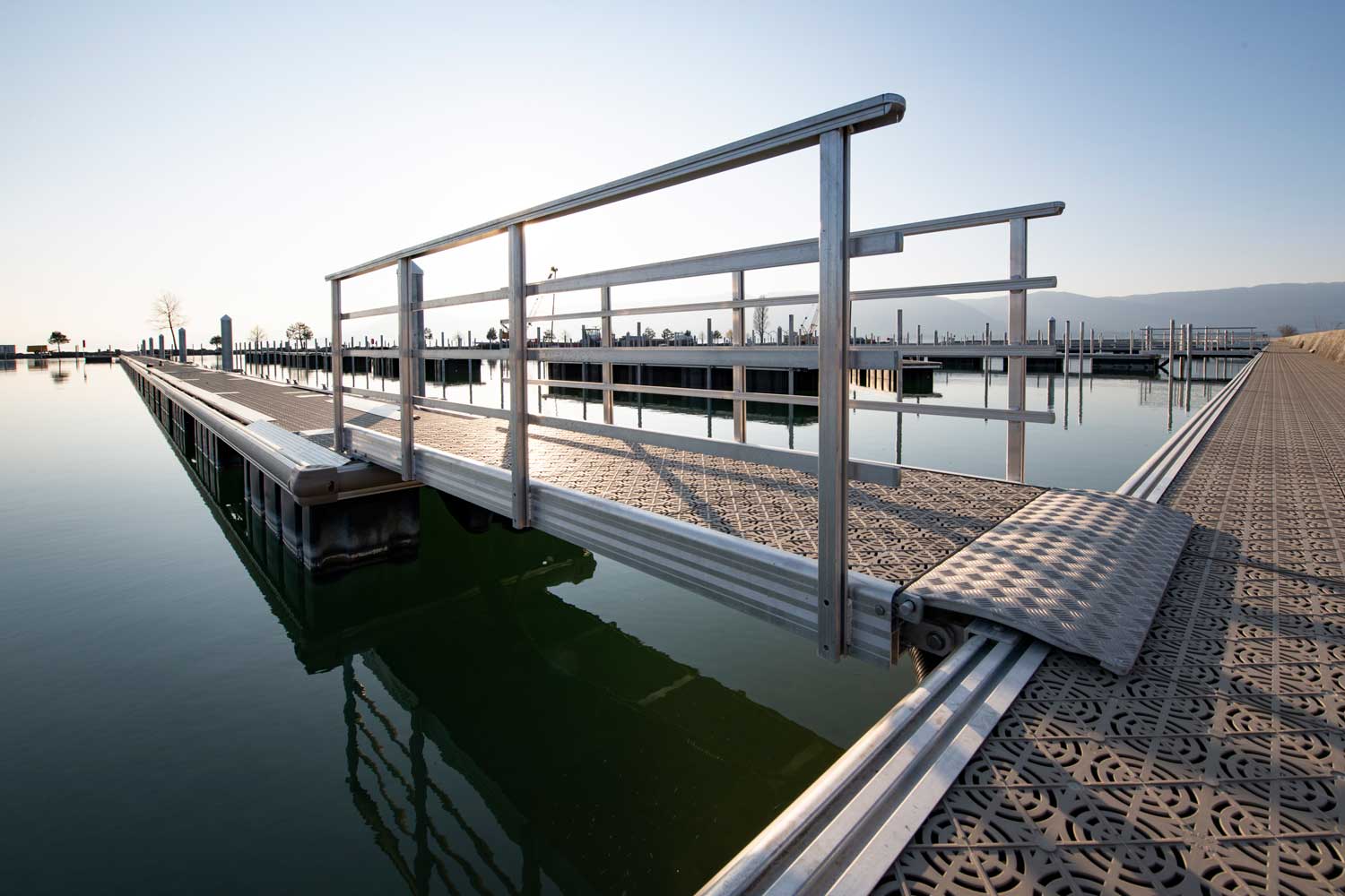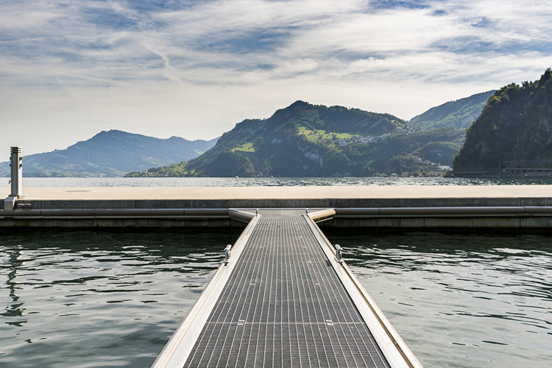 En étroite collaboration avec nos partenaires, nous analysons tous types de besoins en terme d'amarrage: des pontons privés, des plateformes de baignade, des ports de plaisance de plusieurs centaines de places d'amarrage, des champs de panneaux solaires. Nous dimensionnons, livrons et assemblons des pontons fixes ou flottants, des catways, des bras d'amarrage, des bornes électriques, des passerelles et des structures aluminums.